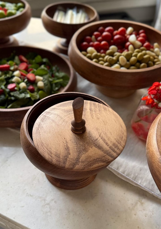 پایه محکم و طراحی منحصر بهفرد آن، علاوه بر زیبایی، استحکام و پایداری را تضمین میکند. درپوش آن نیز به حفظ تازگی شکلات، آجیل یا شیرینی کمک میکند. پرداخت نهایی با روغن گیاهی باعث مقاوم شدن در برابر رطوبت و افزایش عمر محصول میشود.