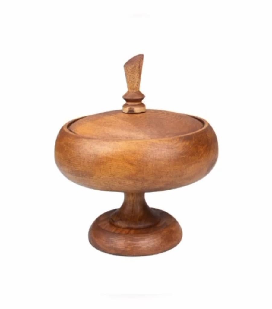 پایه محکم و طراحی منحصر بهفرد آن، علاوه بر زیبایی، استحکام و پایداری را تضمین میکند. درپوش آن نیز به حفظ تازگی شکلات، آجیل یا شیرینی کمک میکند. پرداخت نهایی با روغن گیاهی باعث مقاوم شدن در برابر رطوبت و افزایش عمر محصول میشود.