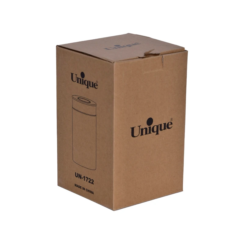 بانکه شیشهای استوانهای یونیک مدل UN‑1722 با طراحی مدرن و ظاهری لوکس، مناسب نگهداری انواع مواد خشک مانند قهوه، حبوبات، شکر، آرد، چای و خشکبار است.