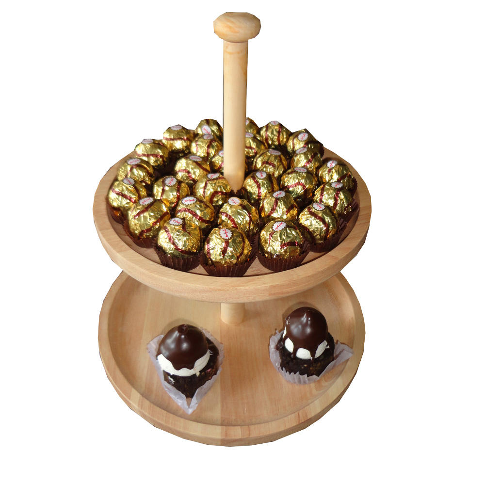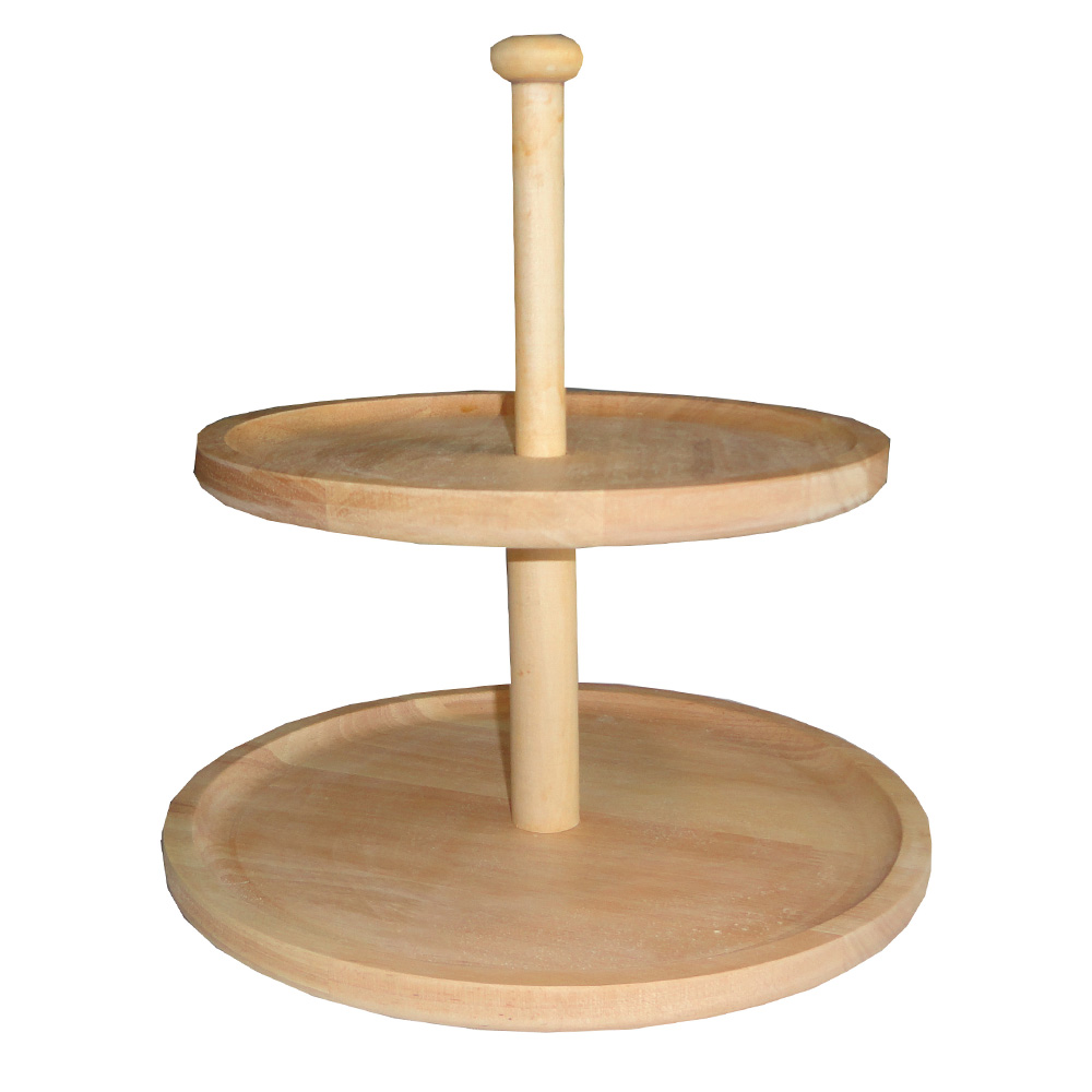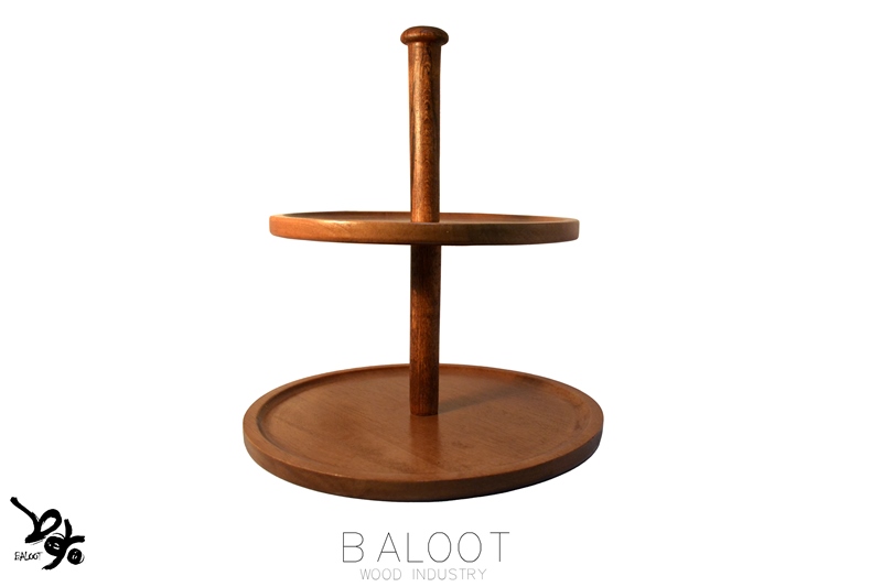 شیرینیخوری چوبی دو طبقه دایره دستهدار کد 3409 بلوط