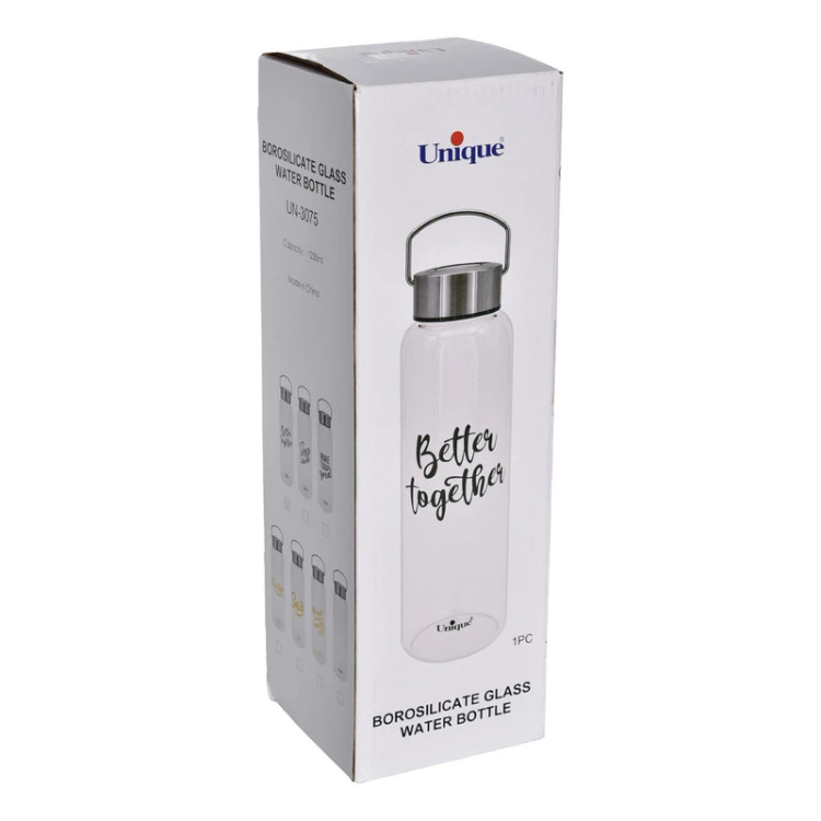 این بطری از شیشهی مقاوم بوروسیلیکات ساخته شده که در برابر دما و ضربه استحکام بالایی دارد؛ مناسب برای آب، آبمیوه یا چای سرد و قابل استفاده در منزل، محل کارو خودرو است.