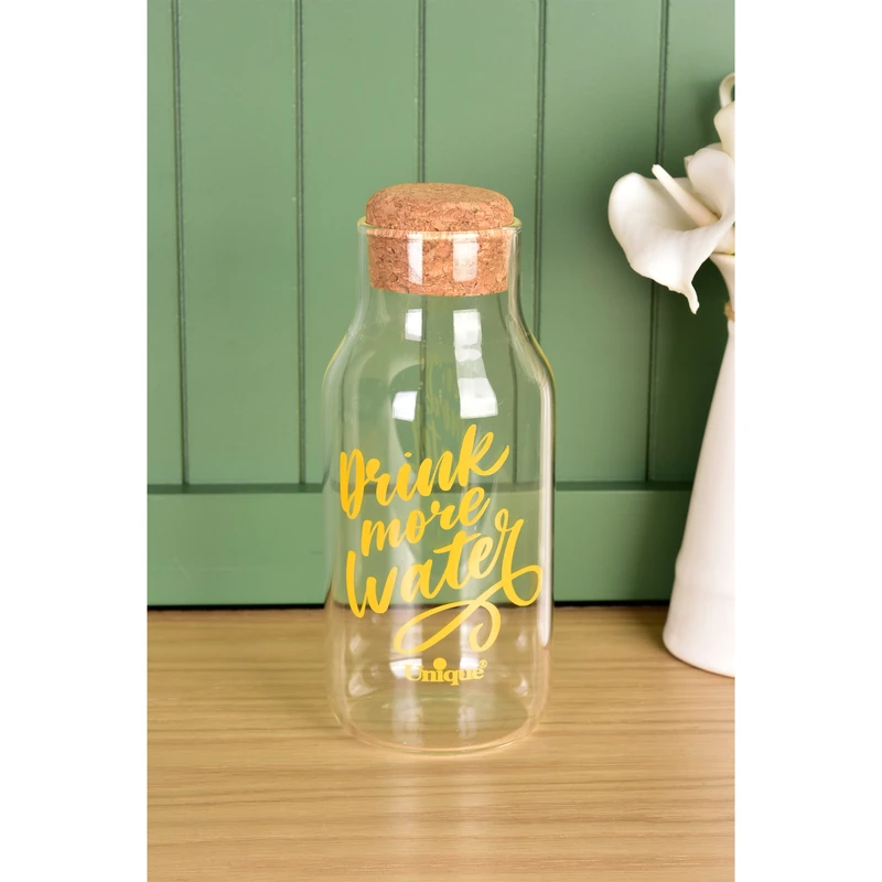 بطری آب یونیک مدل Drink More با طراحی ساده و نوشتهی زردرنگ الهامبخش، انتخابی شیک و کاربردی برای استفادهی روزمره است. بدنهی شیشهای شفاف و درپوش چوبپنبهای طبیعی، حس طبیعی و آرامشبخشی ایجاد میکند و برای نگهداری آب، آبمیوه یا دمنوش سرد کاملاً مناسب است. حجم ۰.۸۳ لیتر این بطری، اندازهای ایدهآل برای یخچال خانه یا میز کار است و ظاهر مینیمال آن بهراحتی با هر دکور هماهنگ میشود.