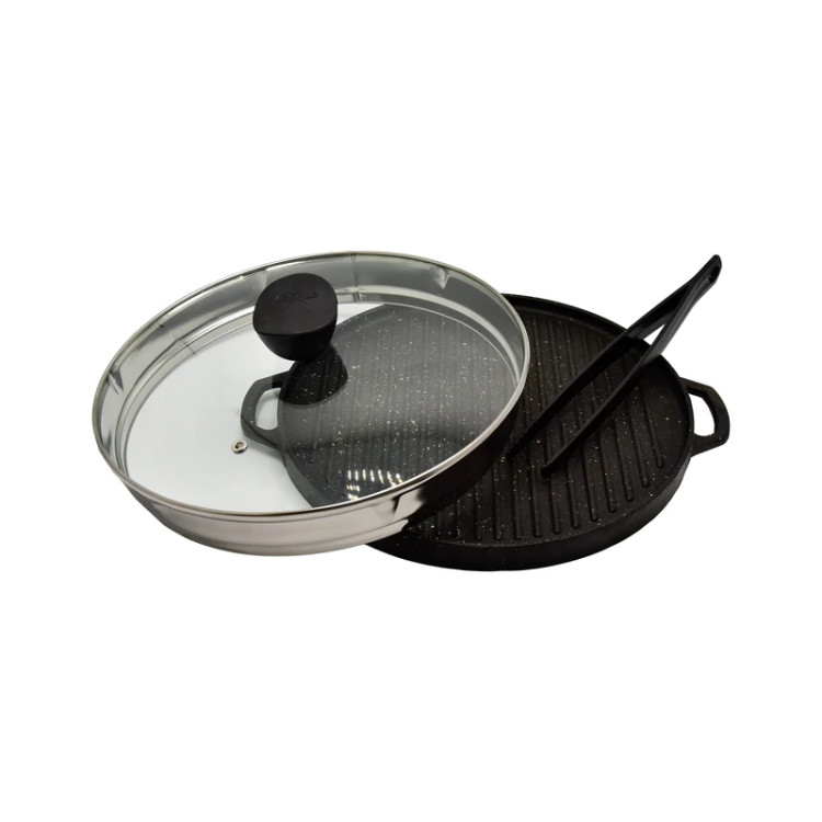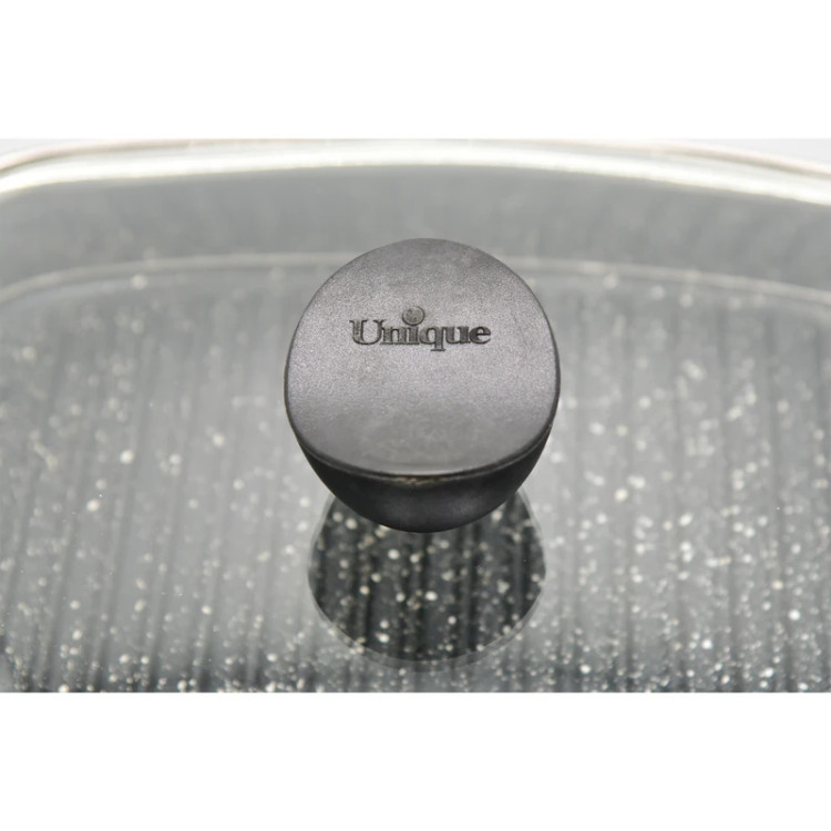 تابه گریل یونیک مدل 6003 با طراحی گرد و سطح شیاردار چدنی، گزینهای ایدهآل برای پخت استیک، مرغ، ماهی و سبزیجات بدون روغن است. بدنهی سنگین و مقاوم چدنی، حرارت را یکنواخت پخش میکند و باعث میشود غذا بهخوبی مغزپخت و طلایی شود. این مدل بههمراه درب شیشهای مقاوم حرارت و انبر مخصوص عرضه میشود تا در هنگام پخت ایمنی و راحتی بیشتری فراهم کند.
