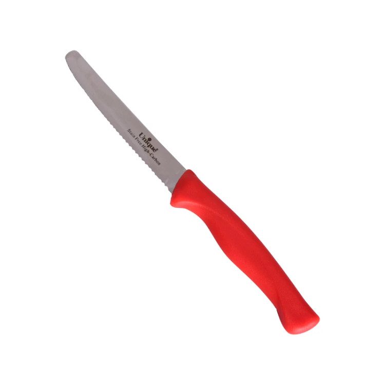 کارد تکی یونیک مدل UN‑5515 با طراحی خوشدست و تیغهی تیز استیل ضدزنگ، انتخابی عالی برای کارهای روزمره آشپزخانه است. این مدل در دو نوع ساده (برای خرد کردن و پوستگیری) و ارهای (برای برش نان و میوههای نرم) عرضه میشود.