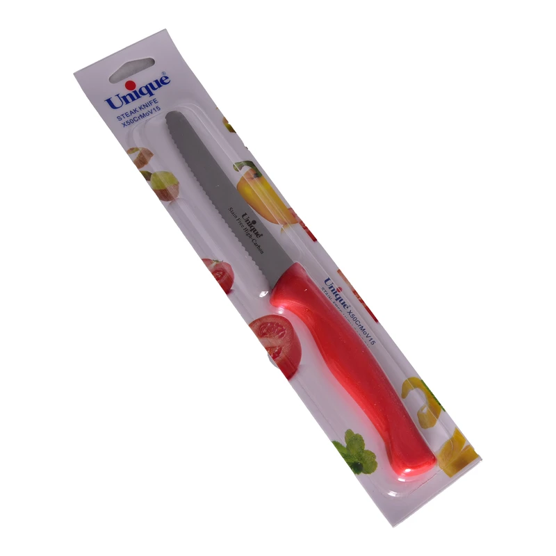 کارد تکی یونیک مدل UN‑5515 با طراحی خوشدست و تیغهی تیز استیل ضدزنگ، انتخابی عالی برای کارهای روزمره آشپزخانه است. این مدل در دو نوع ساده (برای خرد کردن و پوستگیری) و ارهای (برای برش نان و میوههای نرم) عرضه میشود.