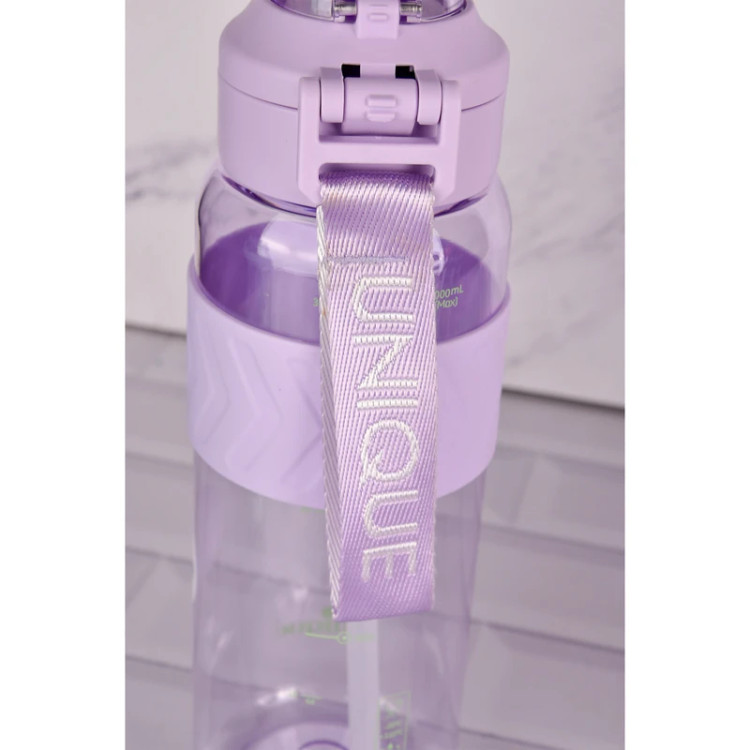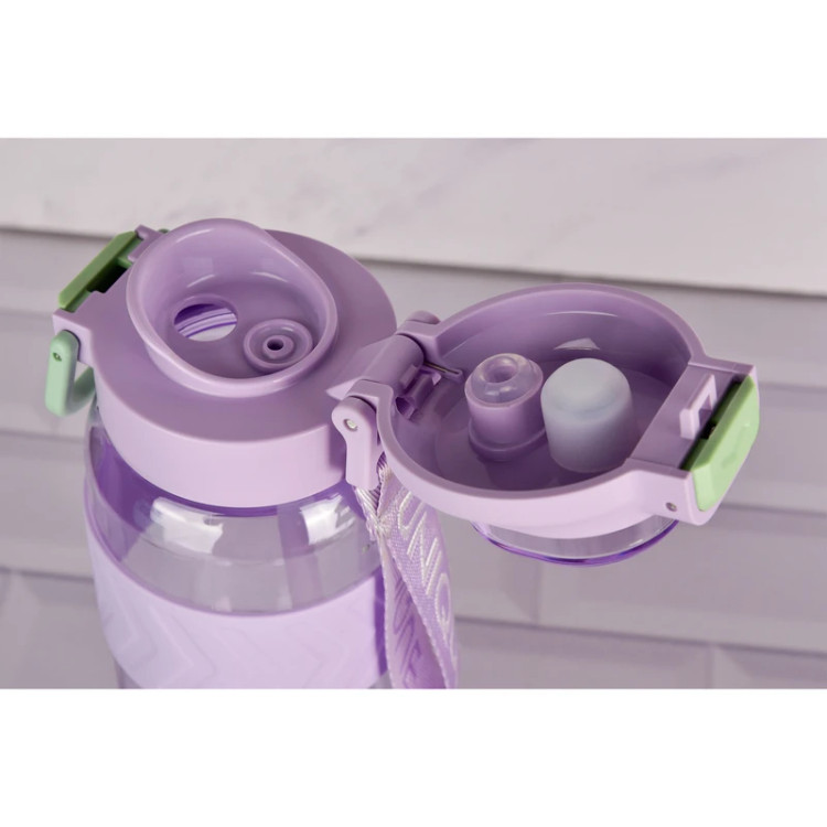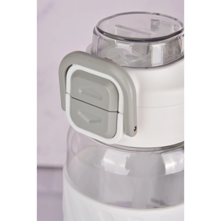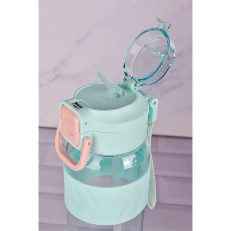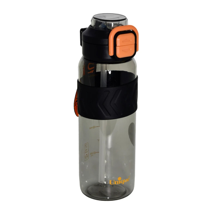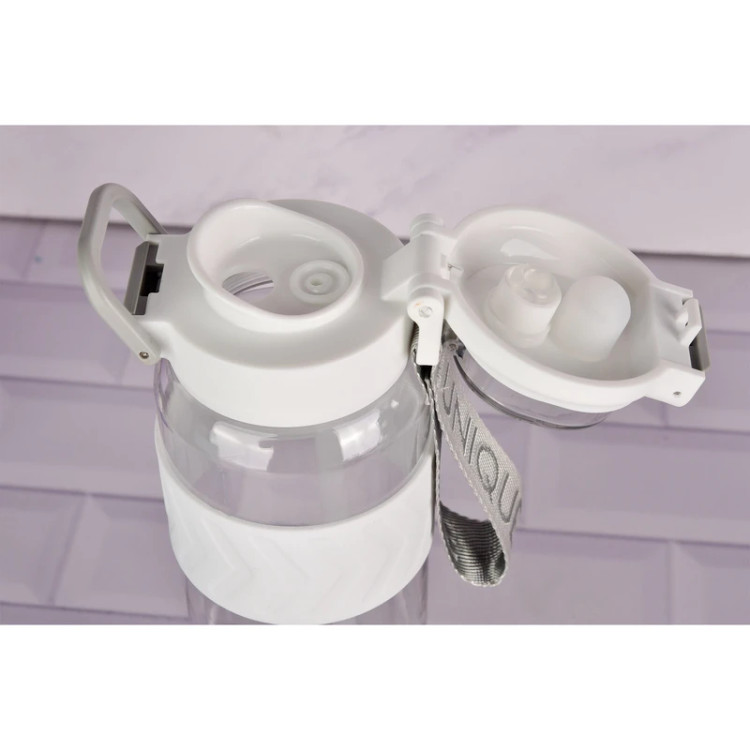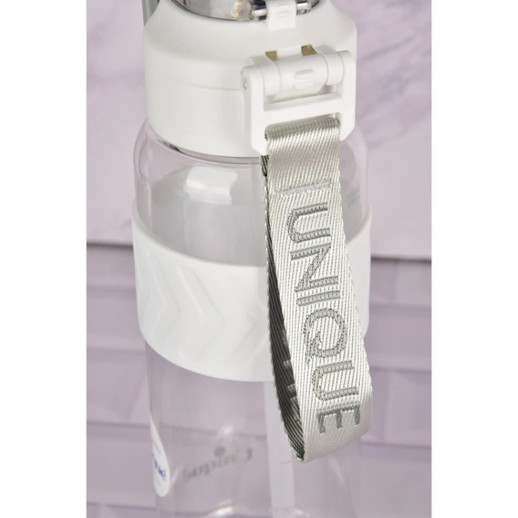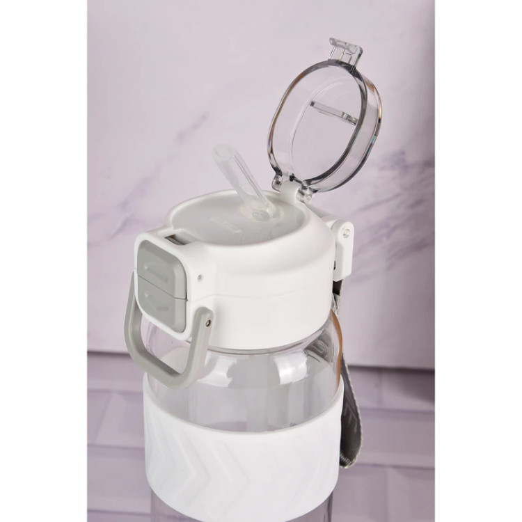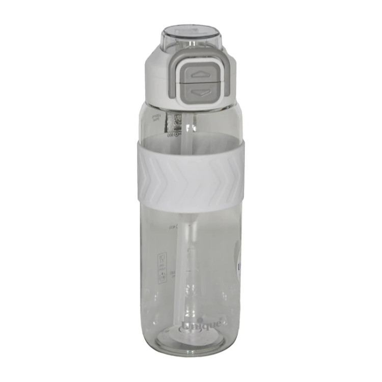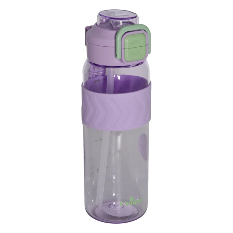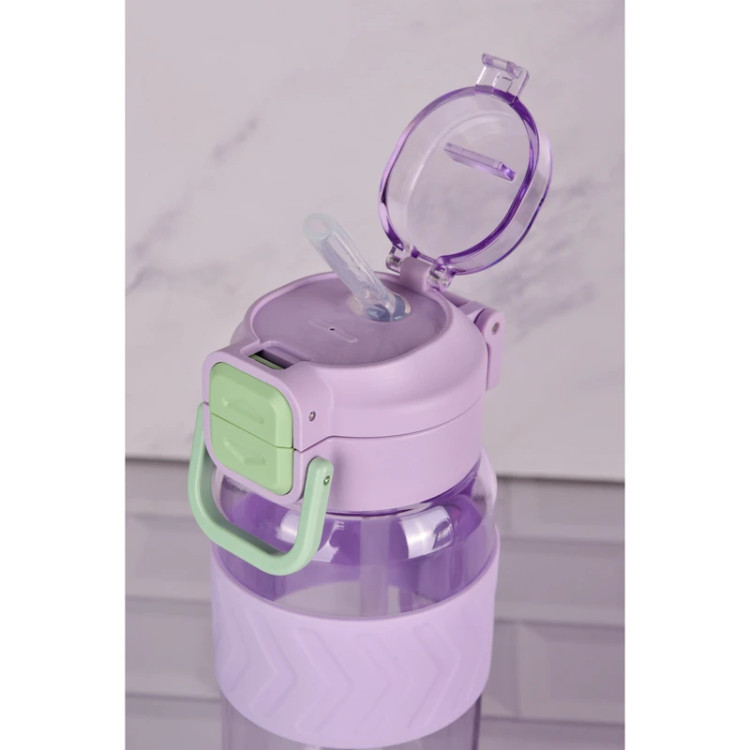 بدنه از پلاستیک شفاف مقاوم و بدون BPA ساخته شده و دارای درپوش قفلدار ضدنشت است. بخش میانی دارای روکش سیلیکونی طرحدار برای گرفتن راحتتر در دست بوده و نی داخلی امکان نوشیدن سریع بدون خم کردن بطری را فراهم میکند.