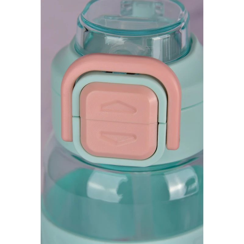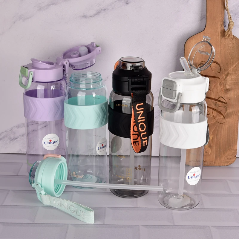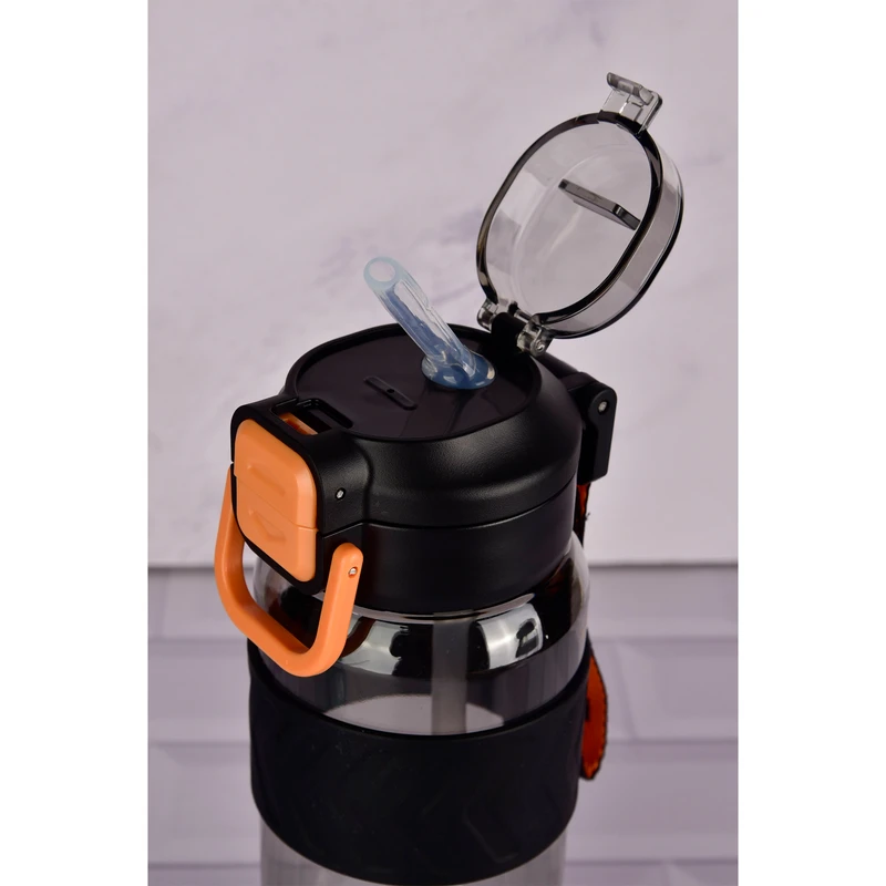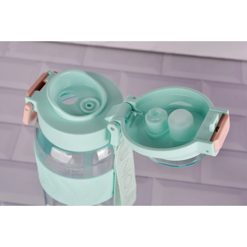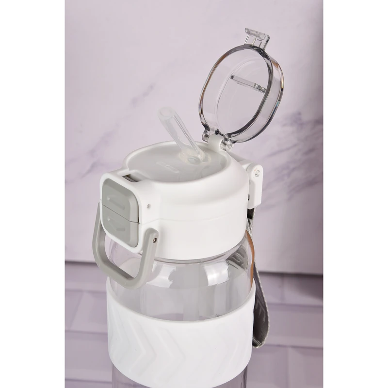 بدنه از پلاستیک شفاف مقاوم و بدون BPA ساخته شده و دارای درپوش قفلدار ضدنشت است. بخش میانی دارای روکش سیلیکونی طرحدار برای گرفتن راحتتر در دست بوده و نی داخلی امکان نوشیدن سریع بدون خم کردن بطری را فراهم میکند.