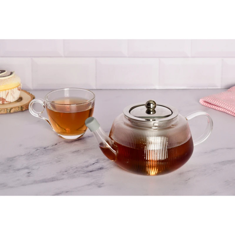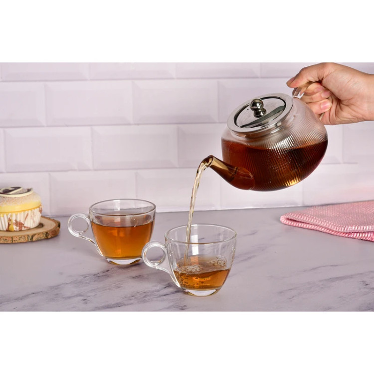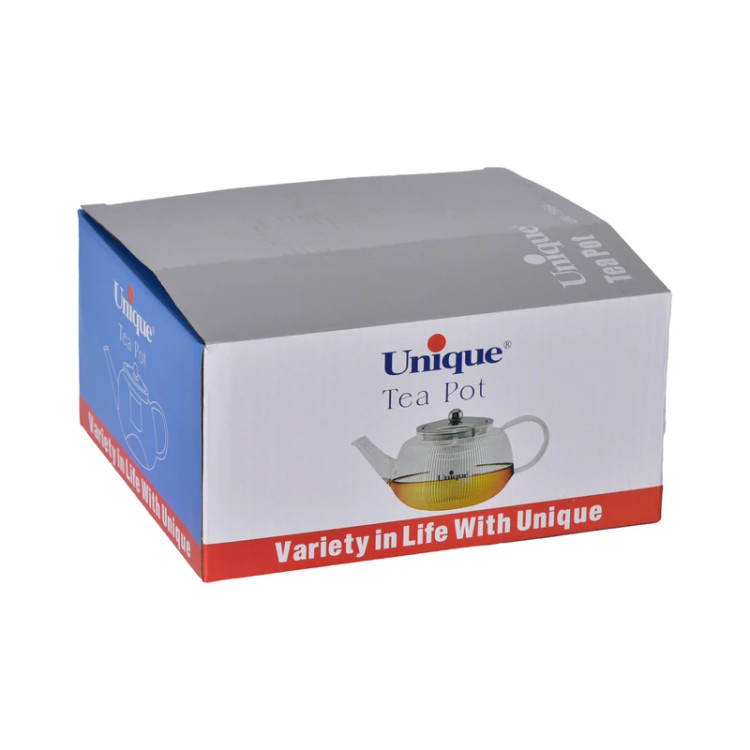 قوری شیشهای یونیک کد 7964 با طراحی شیاردار و مدرن، انتخابی زیبا و کاربردی برای دمآوری انواع چای و دمنوش است.