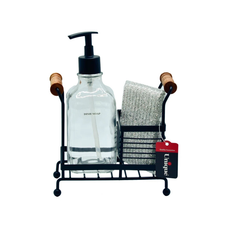 مخزن مایع ظرفشویی یونیک کد 2955 یک اکسسوری شیک، کاربردی و باکیفیت برای کنار سینک آشپزخانه است که با طراحی مدرن و ترکیب شیشه، فلز و چوب، جلوهای مرتب و زیبا به فضای آشپزخانه میبخشد. این محصول علاوه بر مخزن مایع ظرفشویی، دارای جای اسکاج مجزا بوده و به نظمدهی بهتر اطراف سینک کمک میکند.