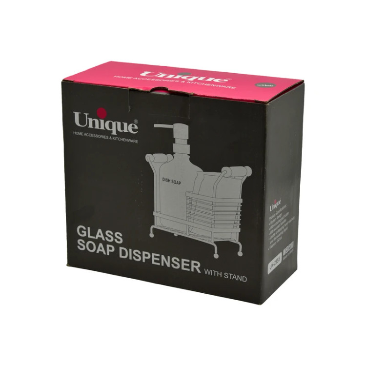 بدنه شیشهای شفاف این جا مایع یونیک امکان مشاهده میزان مایع را فراهم کرده و پمپ روان آن استفاده روزمره را آسان میسازد. استند فلزی مقاوم با دستههای چوبی، علاوه بر زیبایی، استحکام و دوام بالایی به محصول داده است.