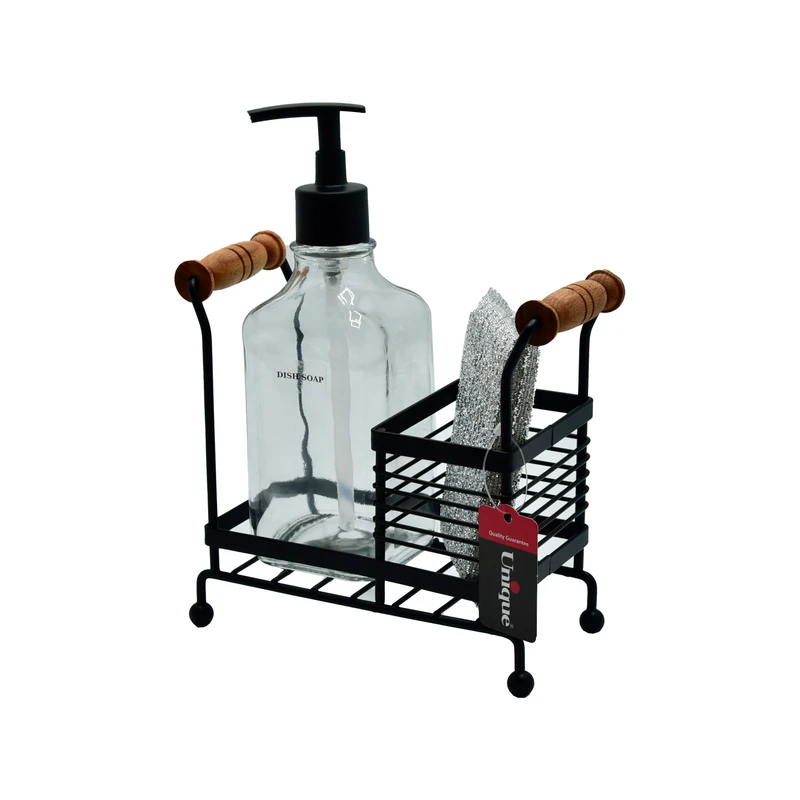 مخزن مایع ظرفشویی یونیک کد 2955 یک اکسسوری شیک، کاربردی و باکیفیت برای کنار سینک آشپزخانه است که با طراحی مدرن و ترکیب شیشه، فلز و چوب، جلوهای مرتب و زیبا به فضای آشپزخانه میبخشد. این محصول علاوه بر مخزن مایع ظرفشویی، دارای جای اسکاج مجزا بوده و به نظمدهی بهتر اطراف سینک کمک میکند.