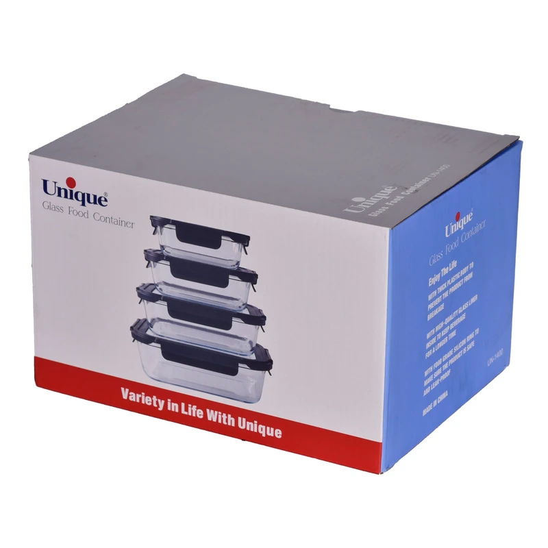 ظرف نگهدارنده یونیک کد 1400 | ست 4 عددی شیشهای درب قفلدار