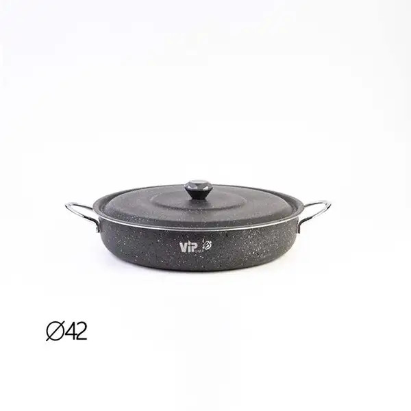 ماهیتابه تکدورو گرانیت VIP مدل روناک سایز ۴۲ یک ماهیتابه بزرگ، جادار و حرفهای است که برای پخت غذا در حجم بالا طراحی شده و انتخابی ایدهآل برای خانوادههای پرجمعیت، مهمانیها، هیئتها و مصارف نیمهصنعتی محسوب میشود.