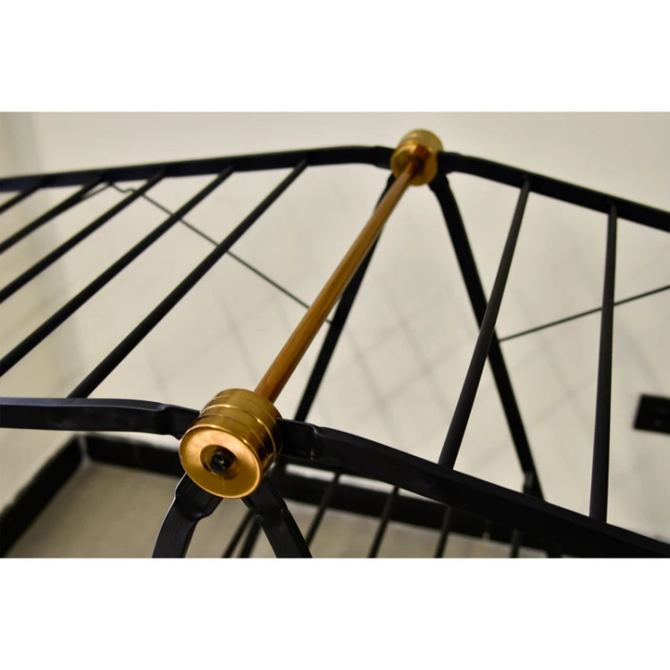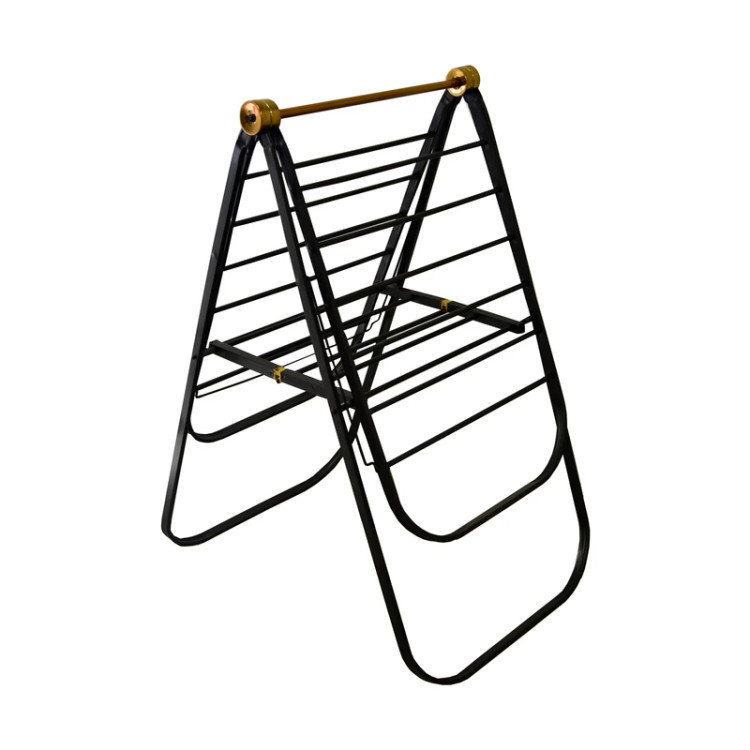 استفاده از تسمههای فلزی ضخیم باعث تحمل وزن بالا شده و ساختار تاشو آن امکان جمعشدن آسان و اشغال فضای کم را فراهم میکند. طراحی پایهها بهگونهای است که ثبات بالایی روی سطوح مختلف دارد.