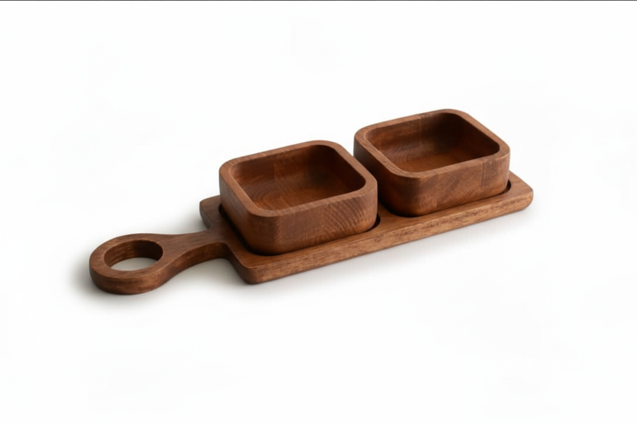 طرح خاص و متفاوت به شکل راکت دو کاسه مجزا برای سرو متنوع ساخته شده از چوب طبیعی و مقاوم Rubberwood ابعاد استاندارد برای میز پذیرایی مناسب برای پذیرایی رسمی و روزمره وزن سبک و حمل آسان ماندگاری بالا با نگهداری صحیح